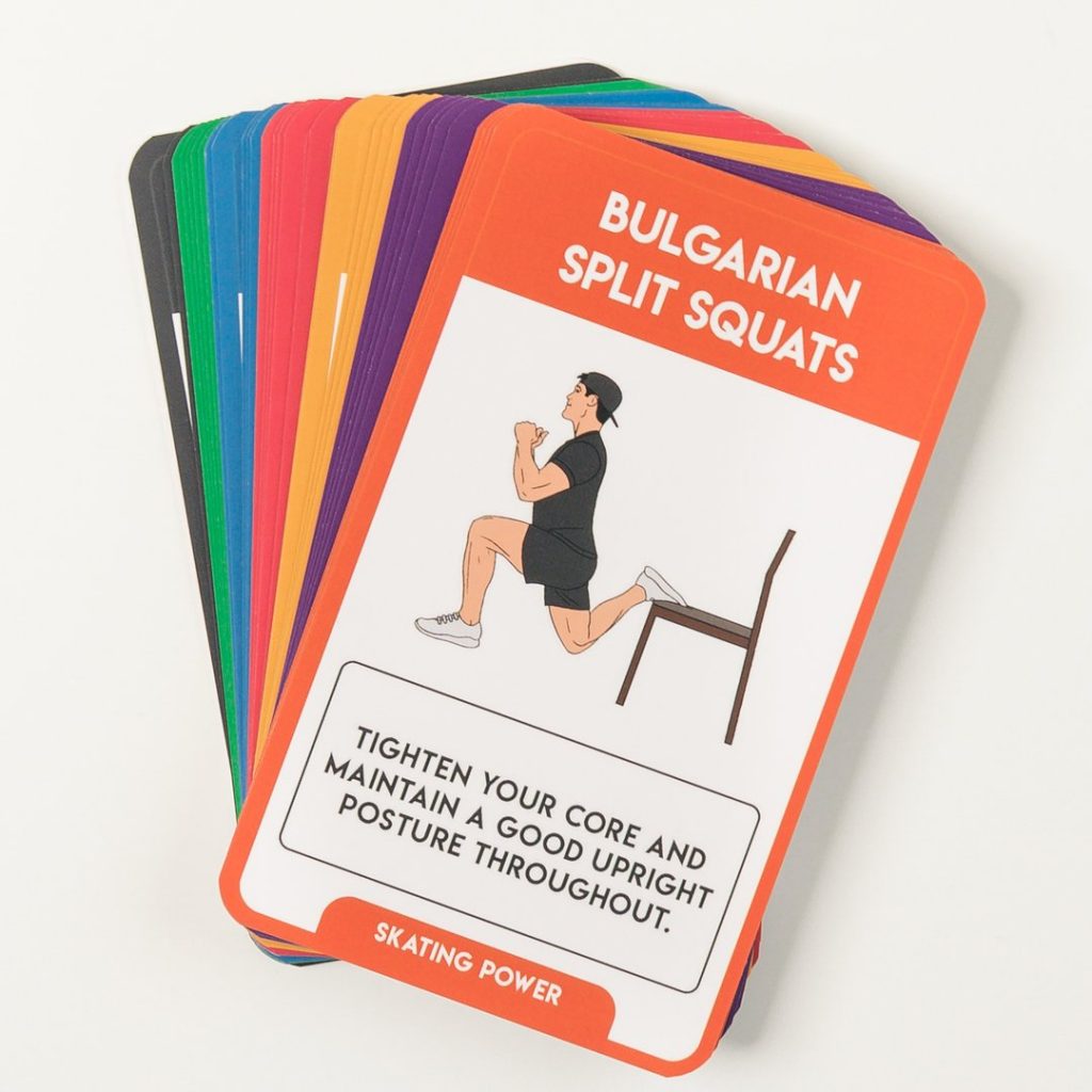 Players can simply pick a card from the deck and perform the exercise to improve their explosiveness, skating, agility, strength and more.